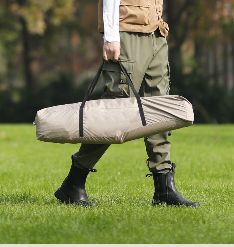 持ち運びも設営も簡単にできる組み立て式タープテント。