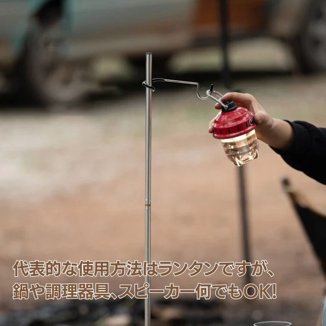 ランタンフックハンガーで鍋、飯盒などを吊るせます。バッグ、小物の吊り下げとしても使えます。キャンプはもちろんの事バイクツーリング、沢登り等にも軽量、コンパクト収納で最適です。ステンレス製なので、耐久性や見た目が良いだけではなく、頑丈に出来ています。手入れがラクラク