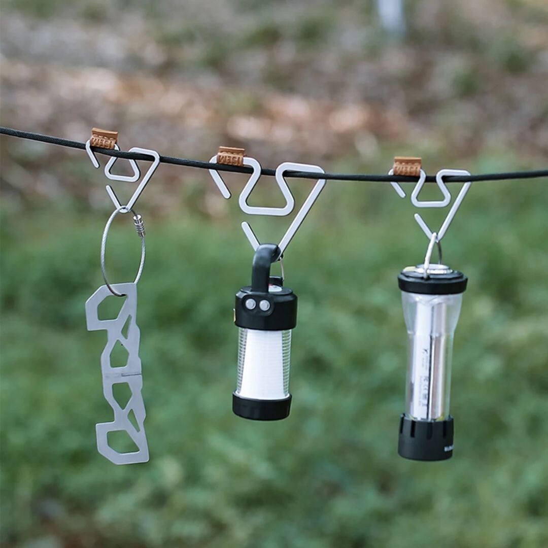 キャンプ中の写真を撮るのが好きという方には本当におすすめです!もちろん見た目だけのメリットだけではありません。逆さに使えば1つで2個まで吊り下げることができます