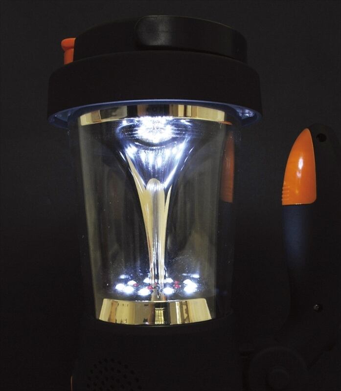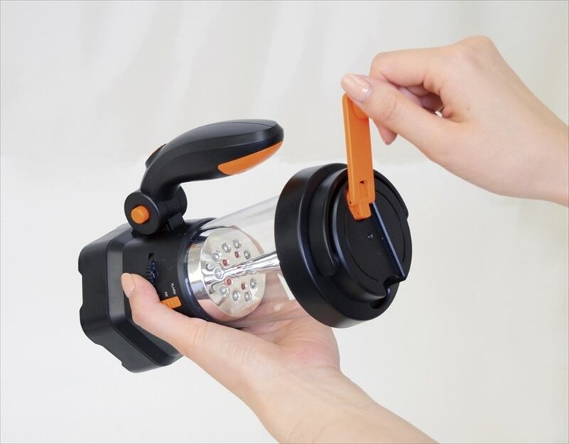 ・LEDサーチライト(3灯)/強弱2段階調節可・LEDランタンライト(10灯)・ダイナモ発電・AM/FMラジオ(ワイドFM対応)・サイレン&点滅灯(赤色灯5)・USBを使用してのスマホ充電機能。