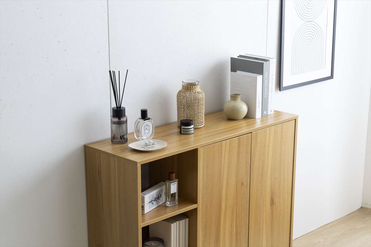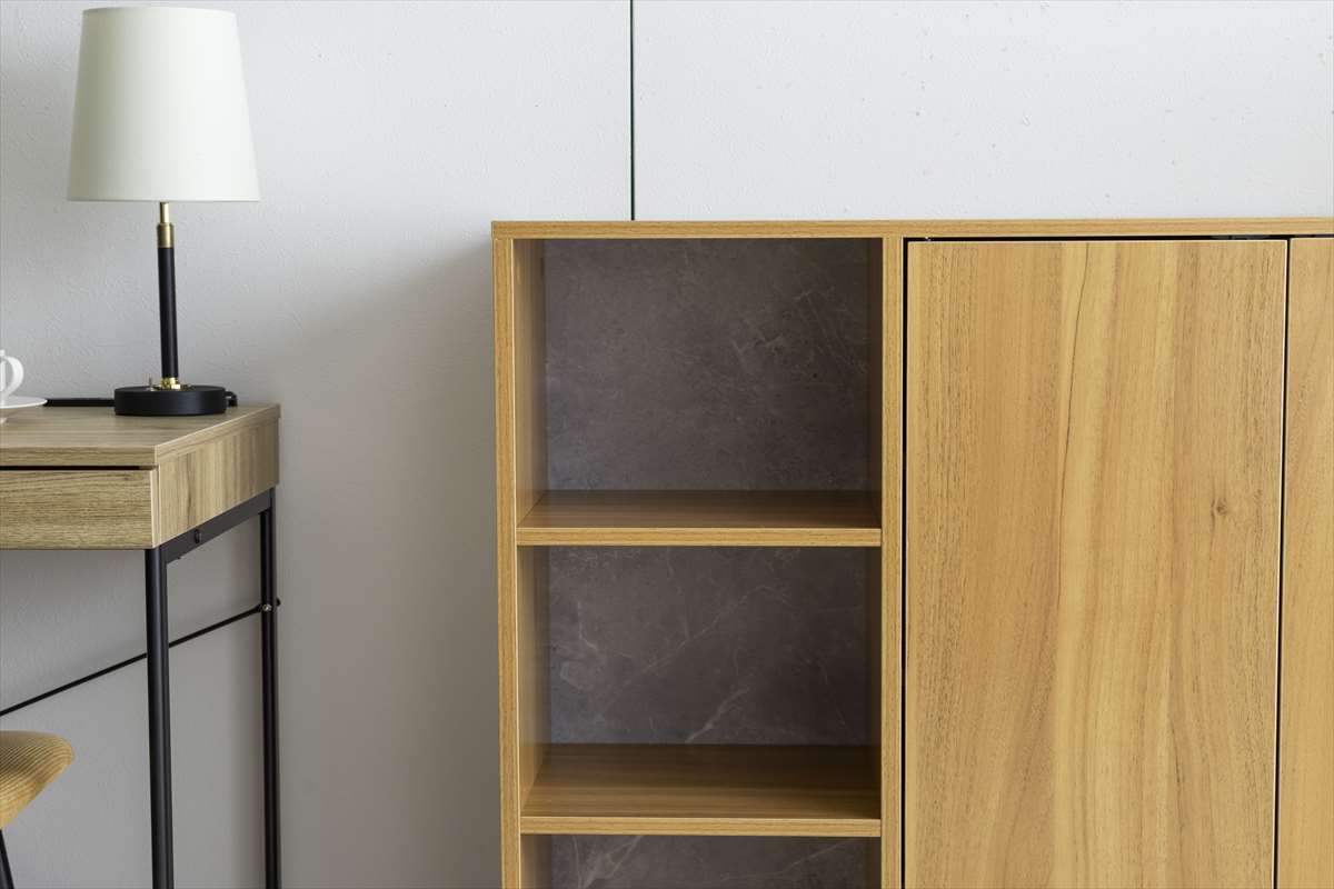 木目調とストーン調の組み合わせがおしゃれに演出する『Pesci(ペッシ)』シリーズのキャビネット