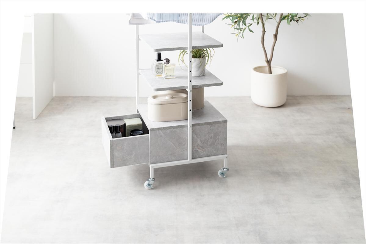【耐荷重】ハンガーバー:約5kg 、棚板:(各)約8kg、引き出し:約5kg