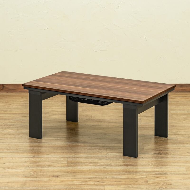 木目柄天板と黒い脚部のツートンカラーがオシャレなリビングコタツです