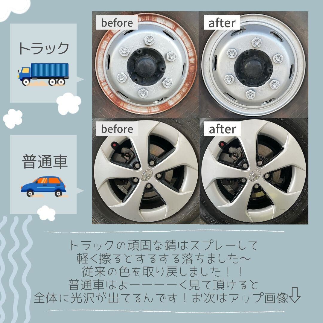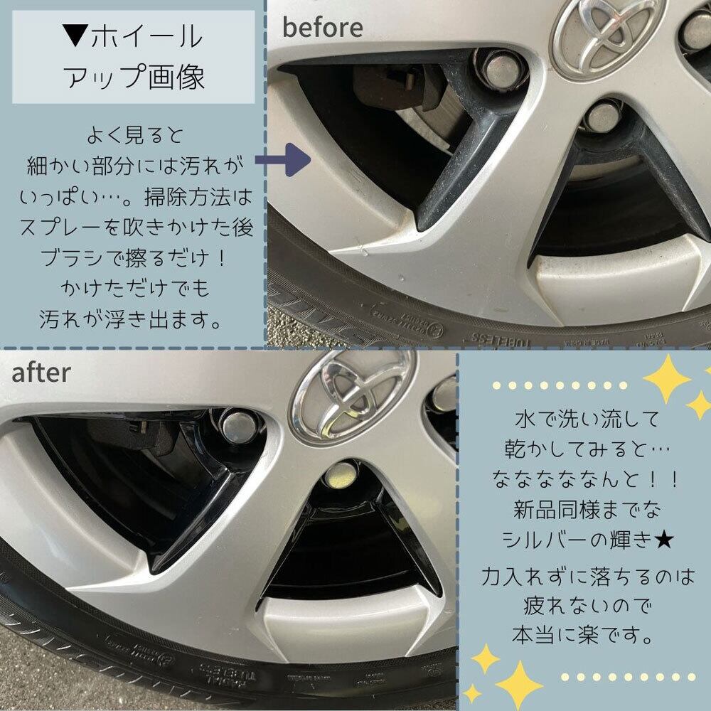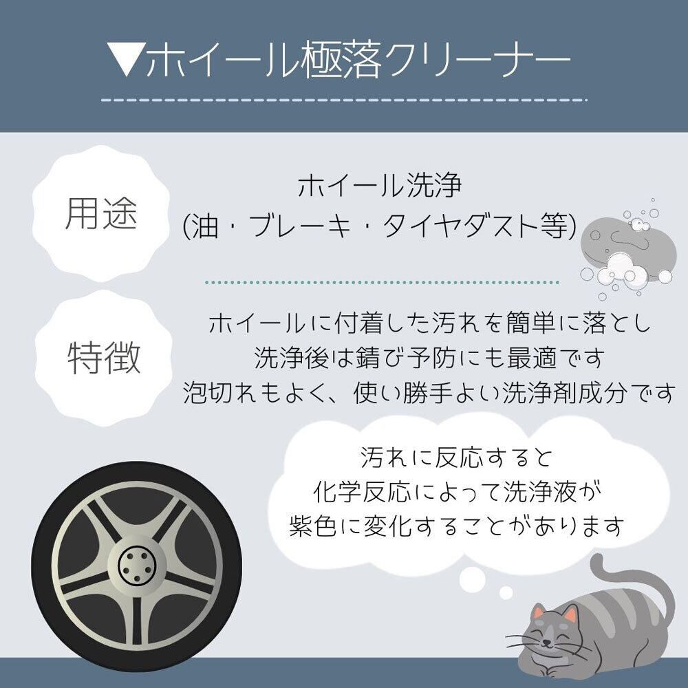 ホイールに付いたブレーキダストや油汚れ、タイヤの汚れを強力洗浄。