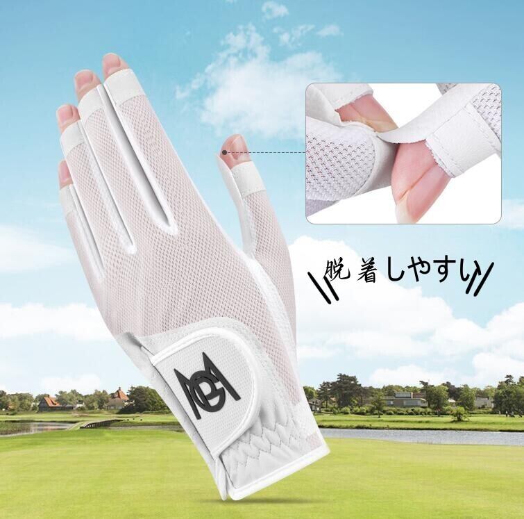2023春新作 ゴルフ用品 レディース 両手用 指先カットゴルフグローブ バイカラーデザイン