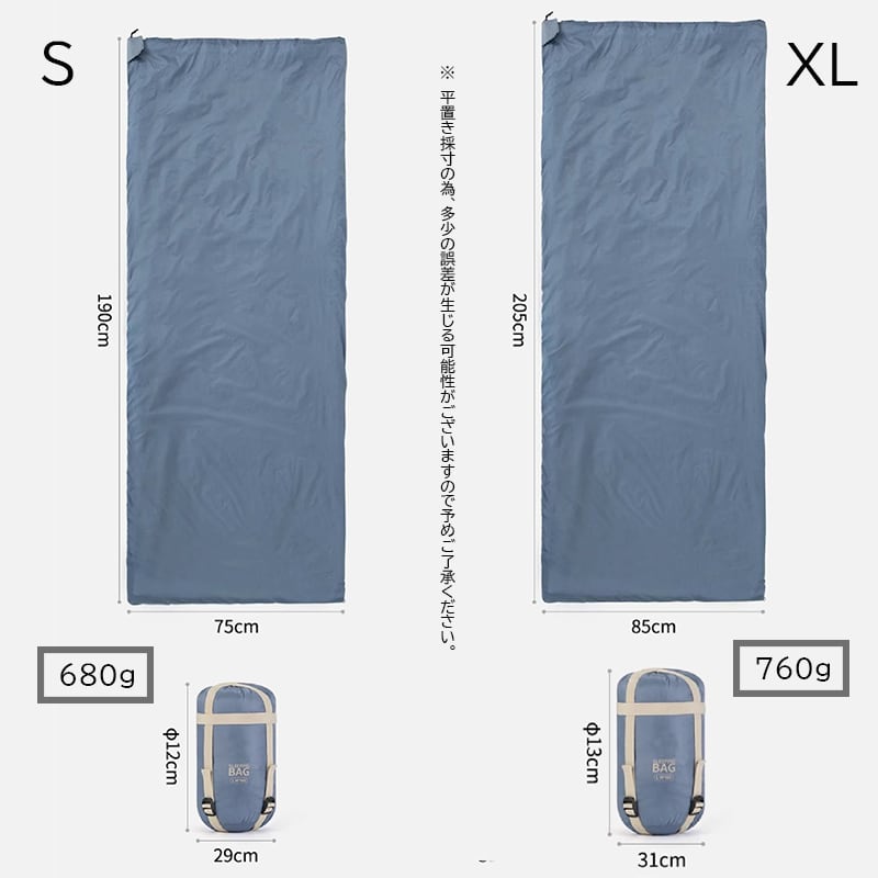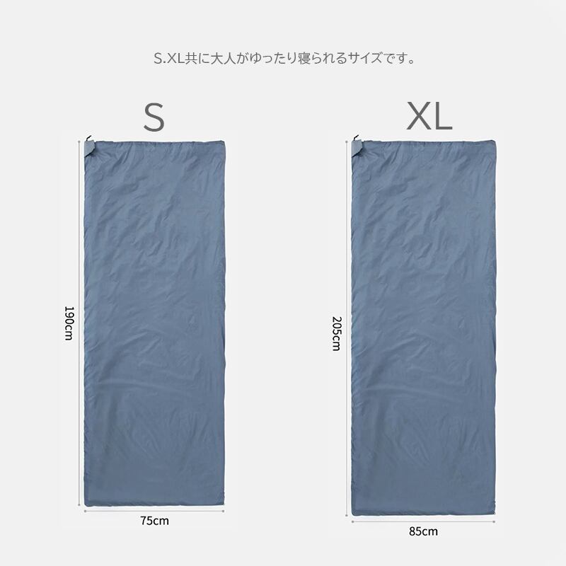 ・使用時のサイズはS約75×190cm、XL約85×205cmの2タイプございます。