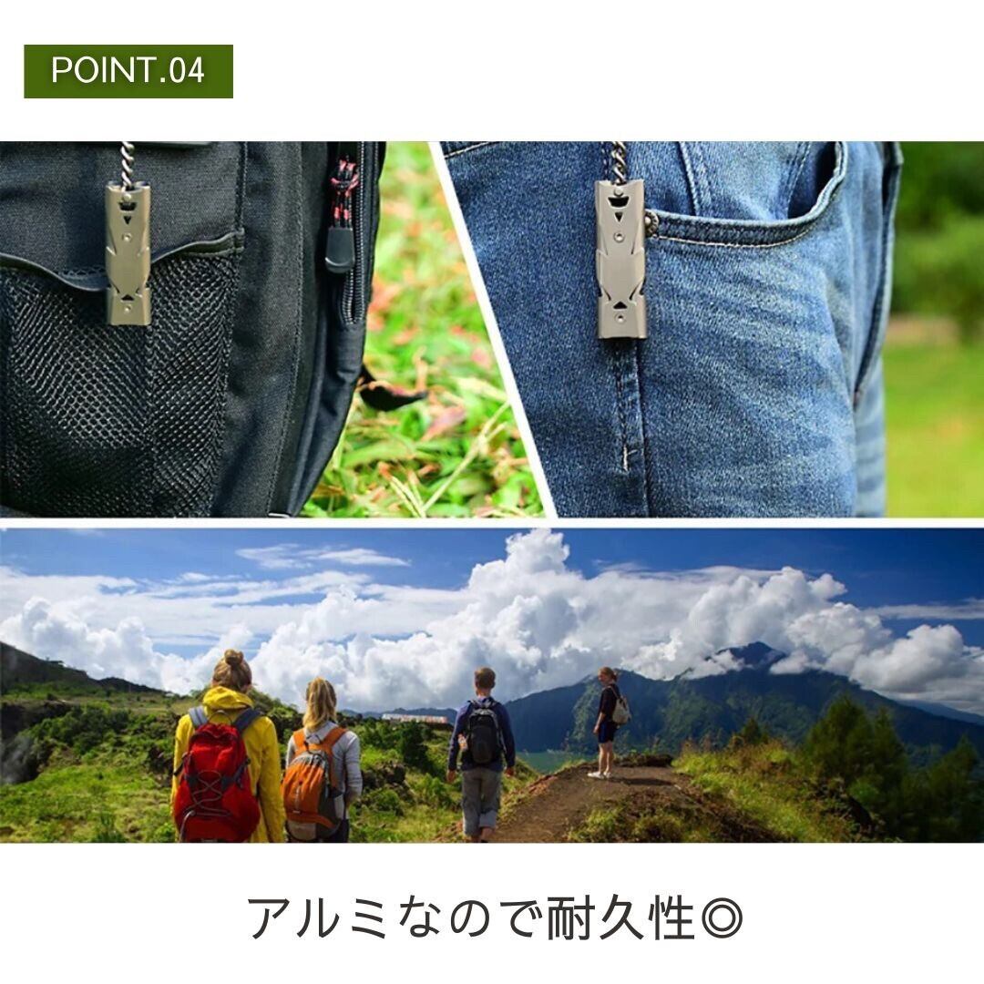 ポータブルホイッスルなので持ち運びも便利でなんと嬉しいリング付きです♪アウトドアを楽しみたい方、山に入るのが趣味の方、スポーツの際に使われるホイッスル、防犯用としてお子様に持たせておくのにもいいのではないでしょうか。