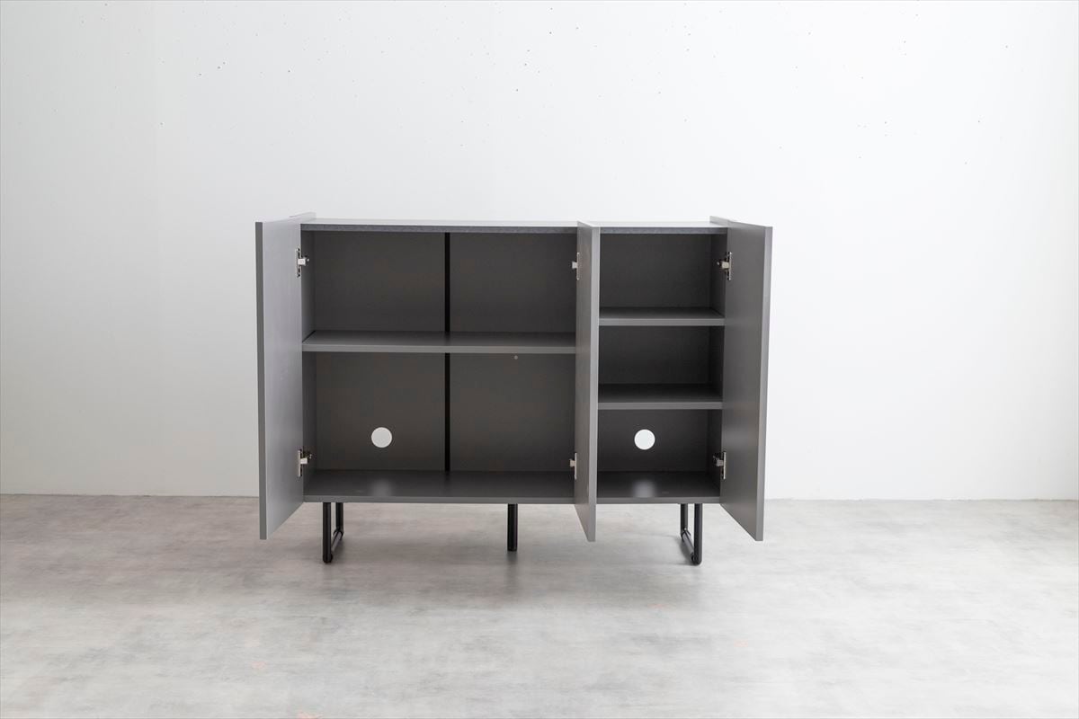 【グレー】本体:パーティクルボード、天板・側面:メラミンシート貼り、扉:鏡面貼り