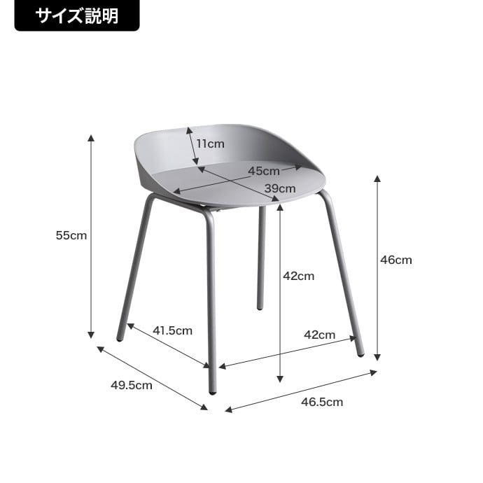 幅46.5cm×奥行49.5cm×高さ55cm(座面高:46cm)