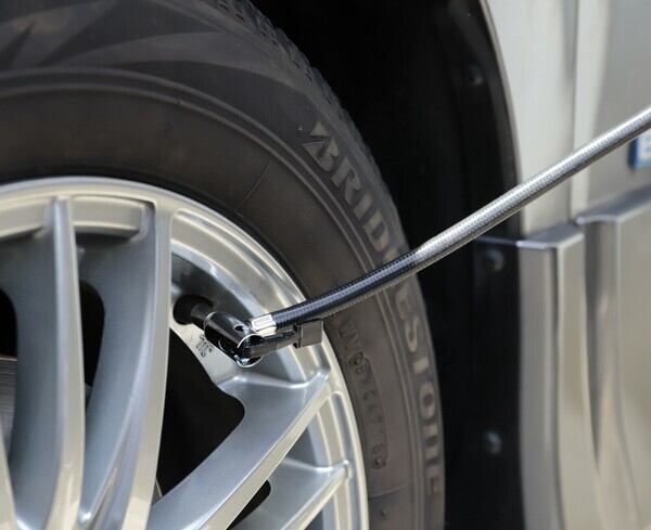 ●ボタンで規定の空気圧設定、充填して自動でストップ。