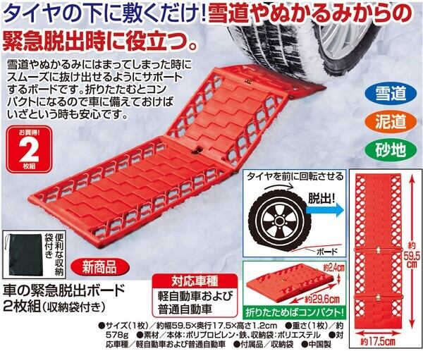 ●雪道やぬかるみにはまってしまった時にスムーズに抜け出せるようにサポートするボードです。折りたたむとコンパクトになるので車に備えておけばいざという時も安心です。