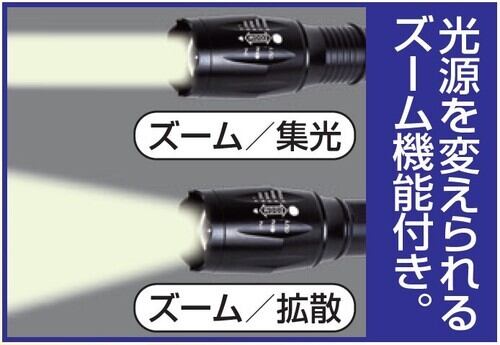 ●光源を変えられるズーム機能付き。ズーム/集光・ズーム/拡散