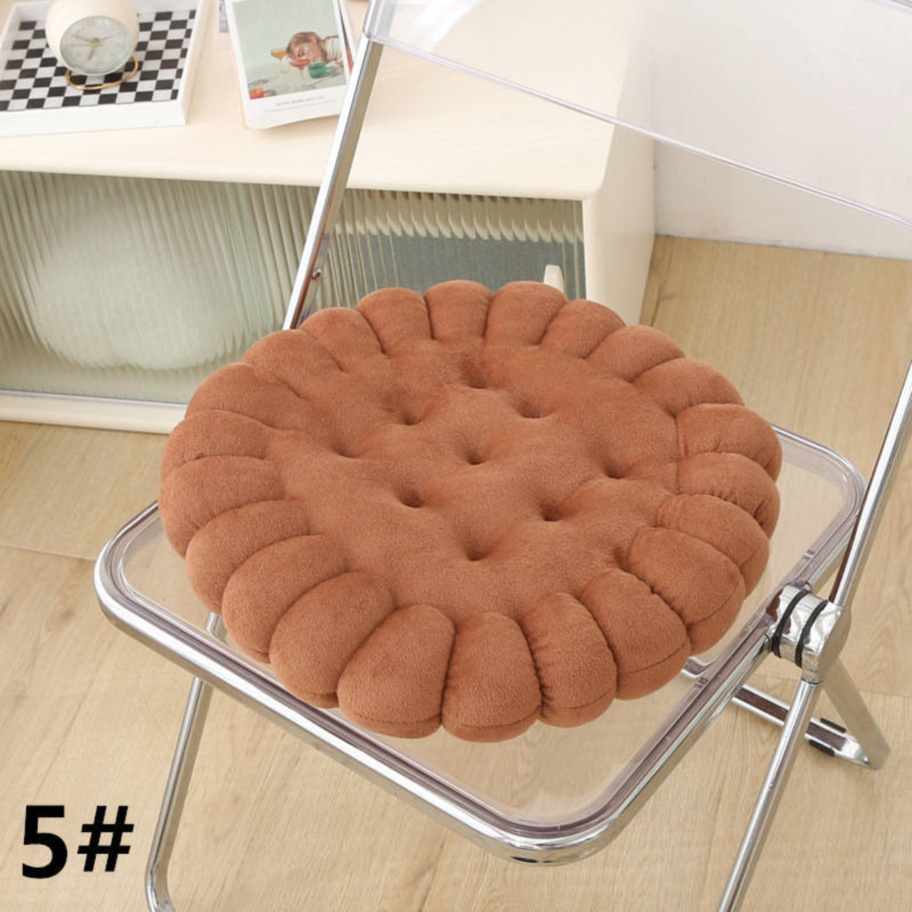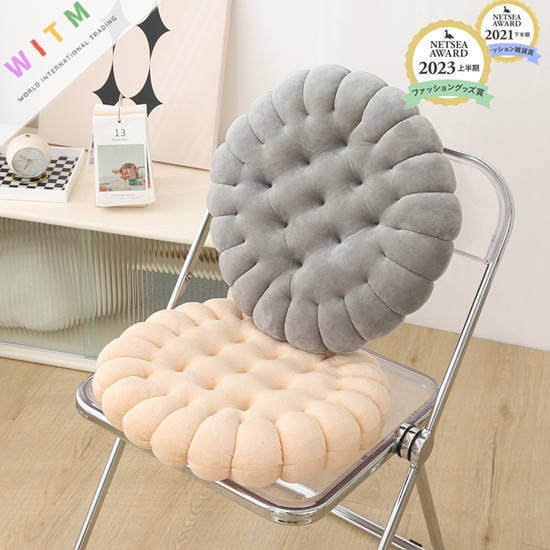 ・座面にフィットしやすいサイズ感とクッキー柄が可愛い。